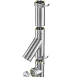 The Primo Inox stainless steel chimney system is produced in a DOUBLE WALL (DP) version. • EN 1856-1 T400 N1 W Vm L20050 G 95 | Diameter: Ø100 ÷ 350 mm, Exterior wall thickness: 0.5mm. PracticInox professional chimneys are designed for evacuating flue gases from heat sources using solid, liquid, or gas fuels, in compliance with current regulations.